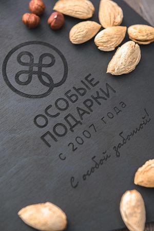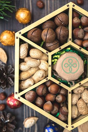 Орехи и мед - самый полезный и питательный подарок! Здоровый перекус дома или в офисе упакован в красивую деревянную шкатулку, которой можно долго пользоваться после употребления "основного состава". Логотип или пожелание на крышке будут сопровождать получателя подарка в его жизни и приятно напоминать о дарителе. Элегантный набор с шикарным вкусовым наполнением понравится всем ценителям еды.