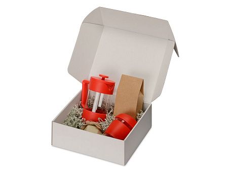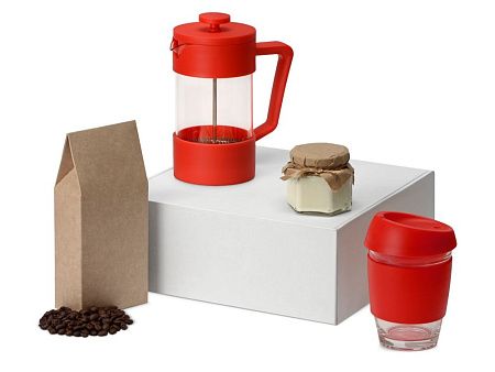 френч-пресс 600 мл, стеклянный стакан с силиконовой крышкой и манжетой 350 мл, кофе зерновой 100 г, бумажный наполнитель 50 г, подарочная упаковка 26,