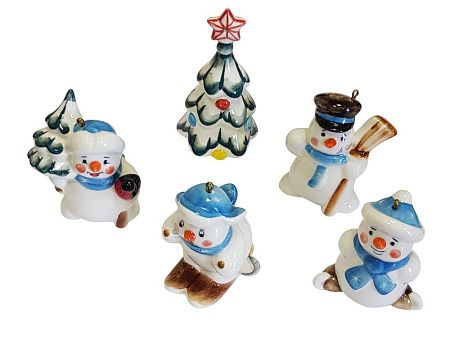 ёлочка 9 см, снеговик с ёлкой 7 см. снеговик на лыжах 6,5 см, снеговик с метлой 6,5 см, снеговик 6 см
