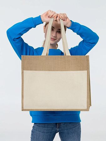 джут, плотность 240 г/м²; ручки, карман - хлопок, плотность 280г/м²