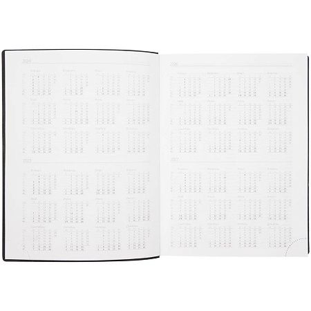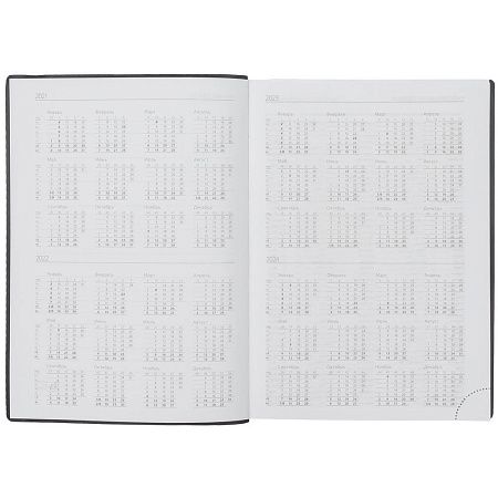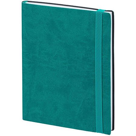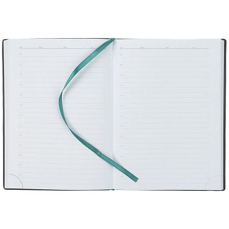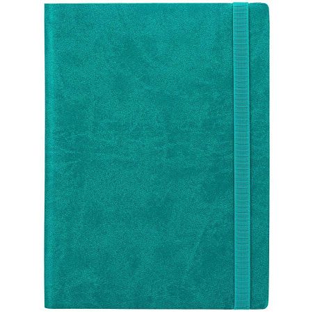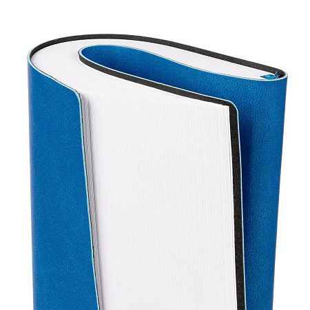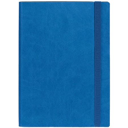 Ежедневник с гибкой обложкой, выполнен из материала Latte, темно-синий НН, дополнен резинкой шириной 1 см, капталом и ляссе темно-синего цвета.