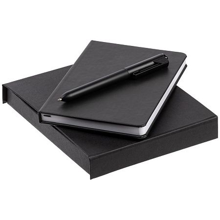блокнот - искусственная кожа; ручка - пластик; коробка - переплетный картон