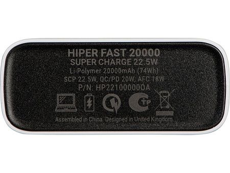 Портативный внешний аккумулятор HIPER FAST 20000 емкостью 20000 мАч (74Втч) оснащён двунаправленным портом USB-C, Micro-USB входом для зарядки, с поддержкой быстрой зарядки аккумулятора QC и PD, 2xUSB-A выходами, максимальный выходной ток 5А, максимальная мощность 22,5 Вт, поддержка быстрой зарядки стандарта QC 18 Вт, поддержка быстрой зарядки стандарта PD 18 Вт, стильный дизайн.