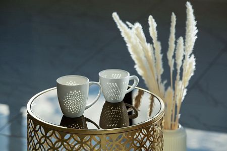 Чашка Coralli Fiore — легкая, словно светящаяся изнутри посуда с легендарным узором «рисовое зерно». Благодаря тонкому слою прозрачной глазури кружка выглядит кружевной и ажурной, при этом напиток гарантированно остается внутри.