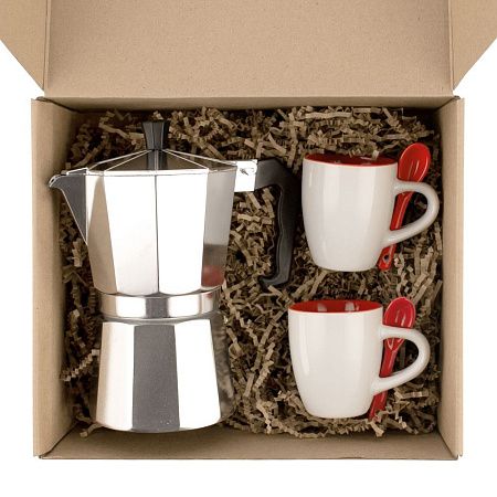 кофеварка - алюминий, пластик; кружка - каменная керамика