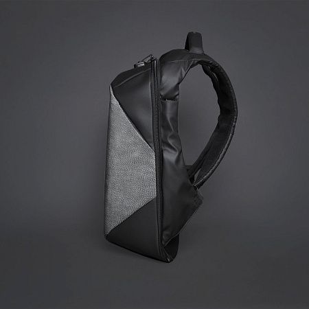 - На внешней стороне рюкзака в стыке серого и черного цвета спрятался треугольный карман на молнии с застежкой фастекс для ключей, которая позволяет легко отстегнуть или пристегнуть ключи