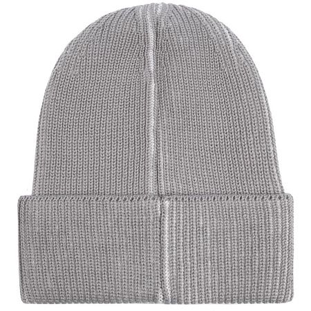 Металлический шильд с названием бренда расположен у заднего шва шапки. Это оставляет место спереди для пришива лейбла или шильдика с логотипом заказчика.