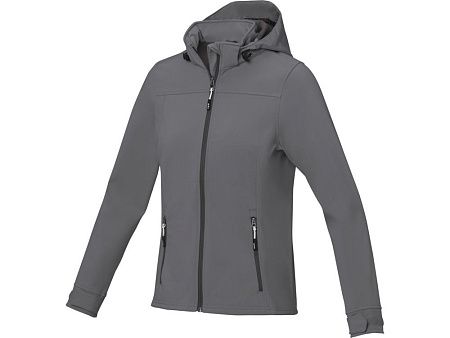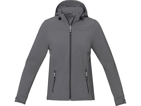 Женская куртка софтшел Langley. Стандартный покрой. Отстегивающийся капюшон на шнурках со стопперами. Обратная молния по центру и на карманах для рук. Регулируемые манжеты на липучках. Отражающий лого сзади. Водонепроницаемый 5000 мм. Дышащий 3000 мм. Ткань эластична в четырех направлениях. Ветронепроницаемая. Ремешки на собачку (второй комплект в цвете антрацит). Ткань из 90% полиэстера и 10% эластана, склеенного со 100% полиэстеровым микрофлисом. 300 г/м².