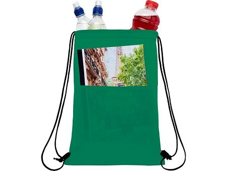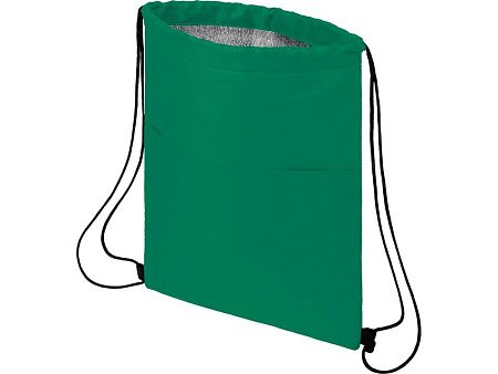 Сумка-холодильник затягивается на шнурок черного цвета. С открытым передним карманом. Вмещает 12 банок. Прочность до 5 кг.