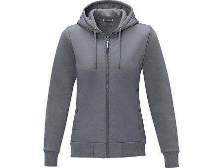 Открытая пластиковая застежка-молния по центру спереди. Карманы спереди. Внутренний карман. Эластичные манжеты и нижний край из гладкого трикотажа. Петля для подвешивания с фирменной символикой. Капюшон на кулиске. Внутренняя сторона покрыта ворсом. Фигурные швы и зауженная талия для идеальной посадки. Удобный бегунок застежки-молнии. Главный лейбл нанесен методом термоприклеивания, удобным для размещения рисунков на ткани.