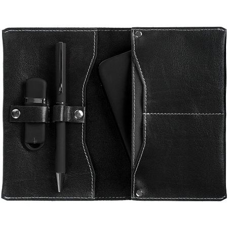 органайзер - натуральная кожа; аккумулятор - пластик, покрытие софт-тач; флешка - пластик, покрытие софт-тач; ручка - металл, покрытие софт-тач