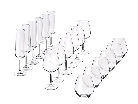 бокал 550 мл d10 х 11,2 см- 6 шт, бокал для вина 460 мл d9 х 20 см- 6 шт, бокал для игристого 205 мл d6,5 х 23 см- 6 шт