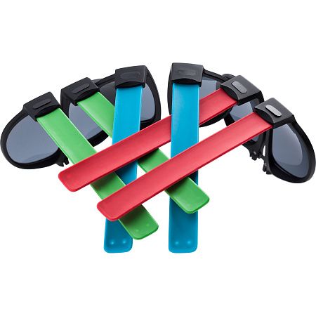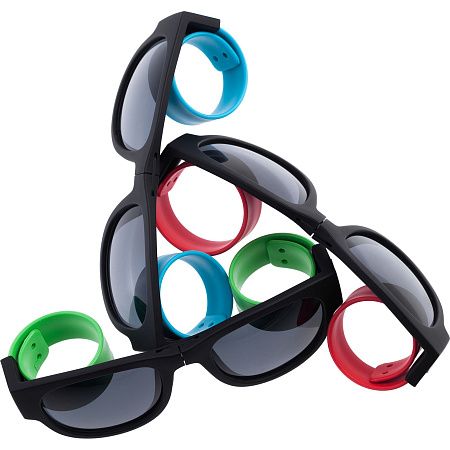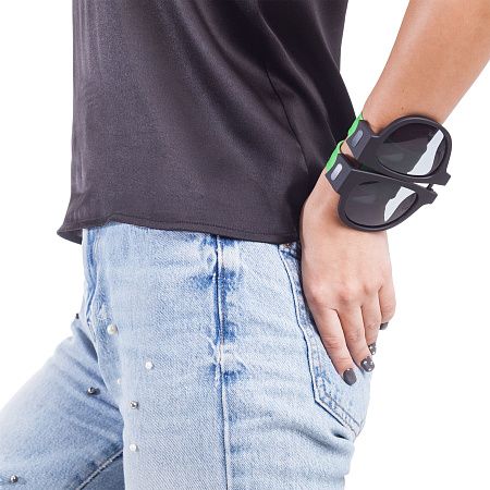 Благодаря складным силиконовым дужкам удобно носить очки на руке, или, например, закрепить на руль велосипеда