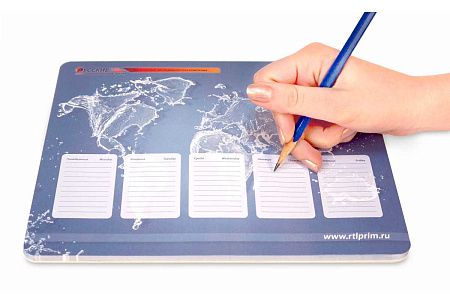 Коврик для мыши с отрывным блоком - удобный и практичный настольный сувенир, который постоянно находится перед глазами. На коврик можно записывать любую информацию.