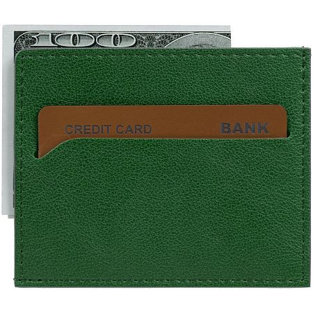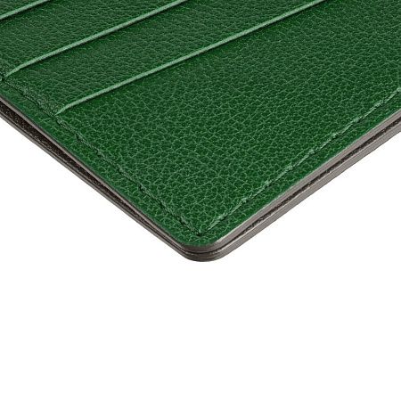 Чехол выполнен из материала Petrus, синий НН, дополнен окрашенным срезом края и внутренним карманом из серого картона. Имеет 4 отделения для кредитных карт и 1 отделение для купюр.