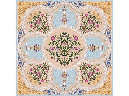Принт аксессуара образуют знаменитые орнаменты востока — гирих (бесконечный “узел”) и ислими (“путь в божественный сад”). Непрерывные витиеватые линии в сочетании с узорами из гибких стеблей с зеленой листвой и пестрыми соцветиями завораживают, погружают в состояние медитации, постижения тайны мироздания через призму счастья и красоты.