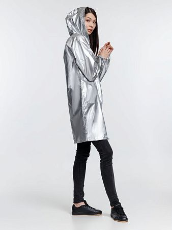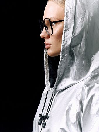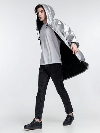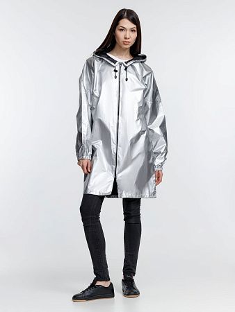 Плащ-дождевик из ткани таффета на молнии с капюшоном. Складывается в мешочек — удобно брать с собой.