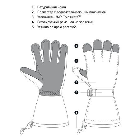 полиэстер 100%; вставки - натуральная кожа; утеплитель - полиэстер 100%, 3m thinsulate, плотность 100 г/м²