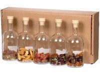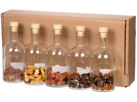 В коллекции набора, вдохновленного русскими сказками и самой природой, 5 бутылок с разными травами, сухофруктами и специями для приготовления сладких или терпких настоек. Одни подействуют как настоящий бальзам на душу, в то время как другие — взбодрят и придадут сил.