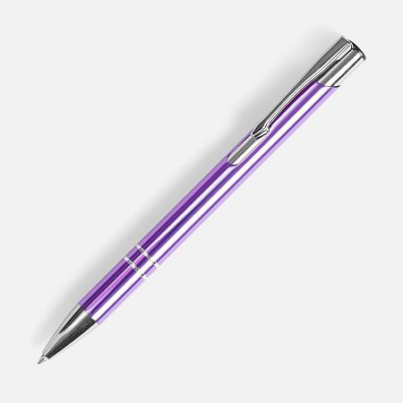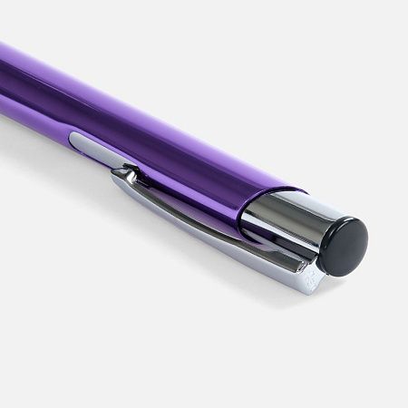 Яркая шариковая ручка с глянцевым цветным корпусом и хромированными деталями.