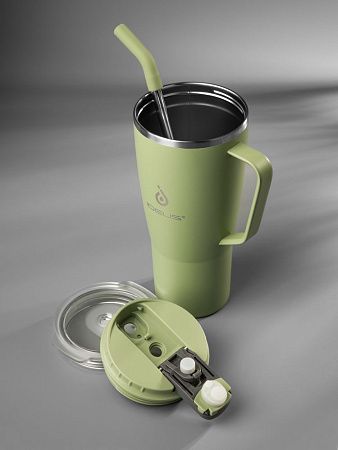корпус - нержавеющая сталь, 18/8; крышка - пластик; трубочка - нержавеющая сталь, пищевой силикон