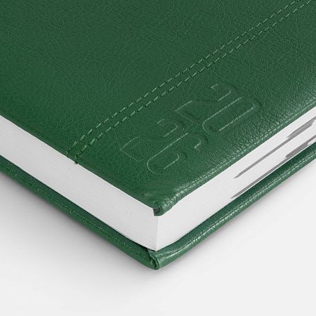 Ежедневник с твердой обложкой с поролоном из искусственной кожи, дополнен декоративной строчкой, капталом и ляссе в цвет ежедневника.