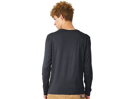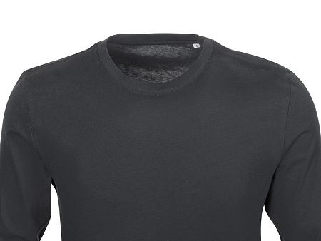 Футболка с длинным рукавом комфортной посадки с боковыми швами. Горловина обработана рибом 1х1 и тесьмой по спинке. Футболка выполнена из хлопкового джерси.