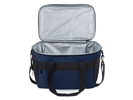 Вместительная сумка-холодильник со специальной конструкцией дна, предотвращающей протекание наружу жидкости от размораживания. Поверхность сумки всегда остается сухой. Основное отделение и карман спереди на молнии. Сбоку 2 сетчатых кармана. Съемный плечевой ремень регулируется по длине. Короткие ручки фиксируются вместе застежкой-липучкой. В комплекте открывалка для бутылок.