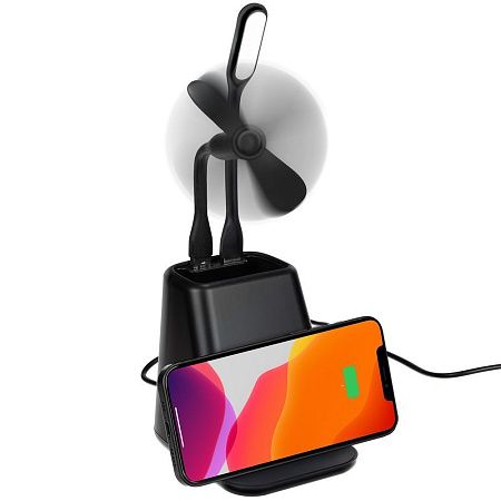 Дополняют функционал устройства портативная лампа и вентилятор, которые входят в комплект. Порты для подключения лампы и вентилятора можно использовать для зарядки гаджетов.