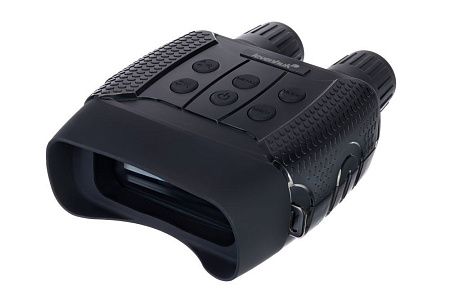 Корпус бинокля имеет эргономичную форму, поэтому удобно ложится в руку. Прибор также не боится брызг воды. Для управления используются всего шесть кнопок, поэтому работать с биноклем очень легко — все нужное находится под рукой. Одного комплекта батареек хватает на 4–10 часов непрерывной работы (длительность работы зависит от интенсивности использования ИК-подсветки).Бинокль с функцией прибора ночного видения. В комплект входит чехол из полиэстера.