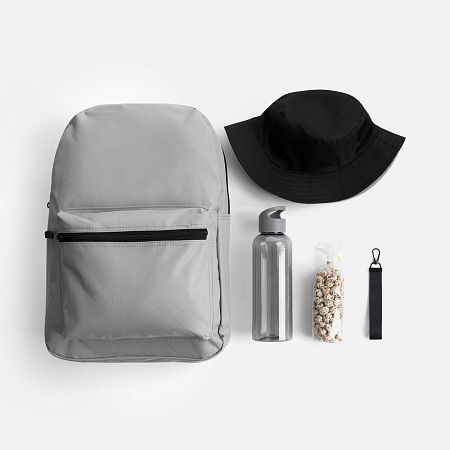 рюкзак - полиэстер, 600d; панама - хлопок 100%, плотность 220 г/м²; бутылка - пластик, ПЭТ; ремувка - полиэстер 100%, металл