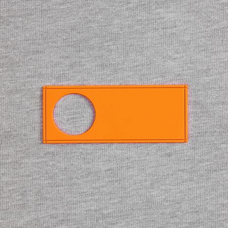 - сделать нанесение на изделии, поверх которого нашить лейбл так, чтобы вырубка стала частью целостного уникального дизайна.