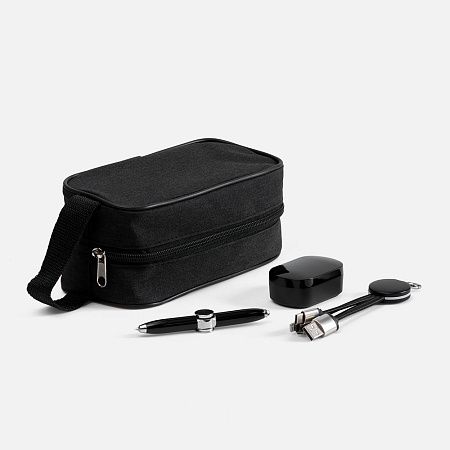 наушники, кабель-брелок - пластик, нейлоновая оболочка, металл; ручка - металл; несессер - полиэстер, 300d