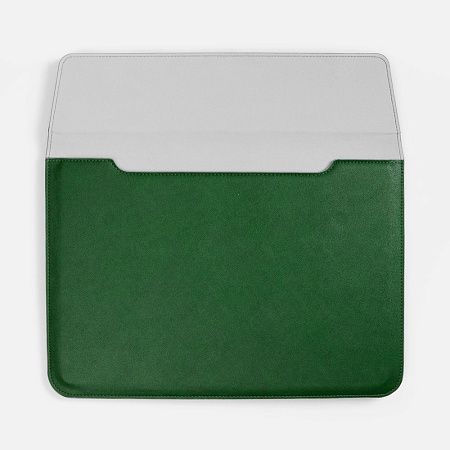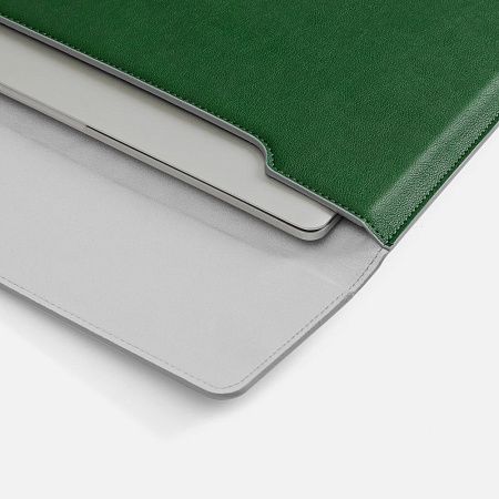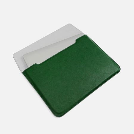 Чехол для ноутбука с диагональю до 15,6 выполнен из материала Petrus, серого цвета, дополнен окрашенным срезом края серого цвета.