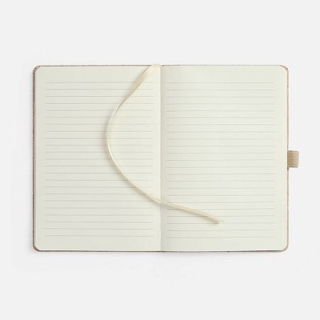 Блокнот с твердой обложкой из натуральной окрашенной пробки, дополнен петлей-резинкой для ручки, ляссе и резинкой в цвет обложки.