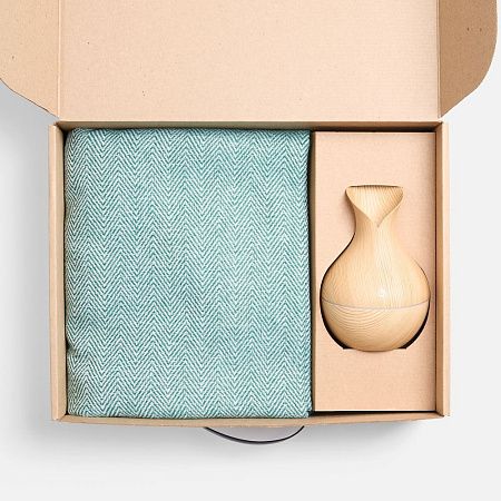 плед - шерсть, 15%; хлопок, 5%; полиэстер, 60%; акрил, 20%, плотность 200 г/м²; увлажнитель - пластик; коробка - картон