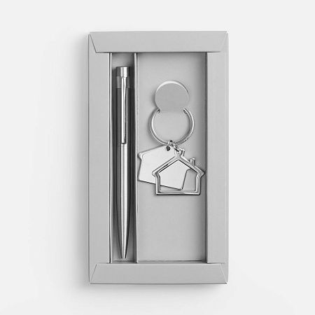 ручка - сталь, переработанная; брелок - металл; коробка - картон