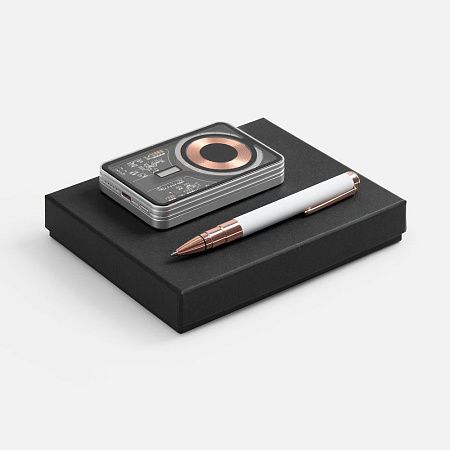 аккумулятор - металл, акриловое стекло; ручка - металл; коробка - переплетный картон, бумага malmero