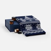 плед - акрил 100%, плотность 430 г/м²; подсвечник - стекло, крышка - пластик; свеча - парафин, соевый воск, парфюмерная композиция; коробка - переплетный картон, бумага classy covers