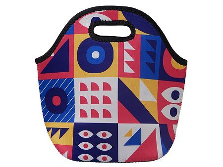 Модная сумка для ланча - обязательный спутник на пикнике и отдыхе за городом. Объём в 5 л достигается благодаря донной складке, такой вместительности хватит для еды на несколько человек. Широкие ручки встроены в конструкцию, благодаря чему сумка может выдержать большой вес, например объёмного термоса и нескольких ланчбоксов. Неопрен, из которого изготовлена сумка, дополнительно помогает сохранить продукты от перегрева в жару и не промокает. Полноцветная печать доступна на лицевой стороне.