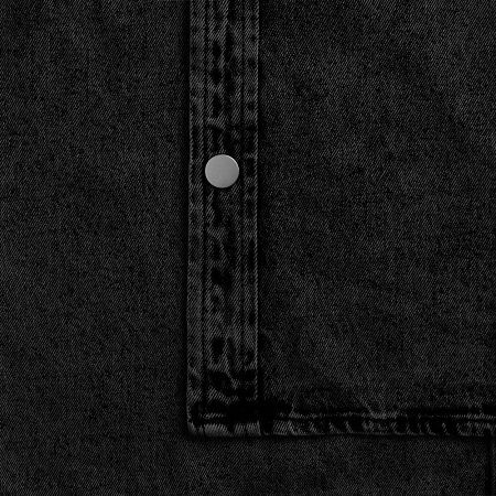 Джинсовая куртка-рубашка унисекс на кнопках прямого силуэта.