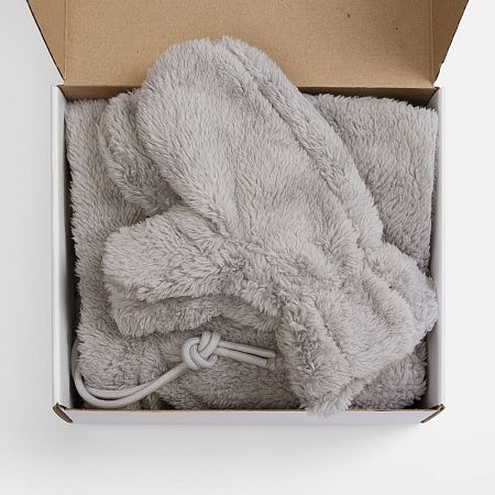 балаклава - полиэстер 100%, плотность 280 г/м², длинноворсовый флис; варежки - полиэстер 100%, плотность 280 г/м²; флис; коробка - микрогофрокартон, плотность 385 г/м²