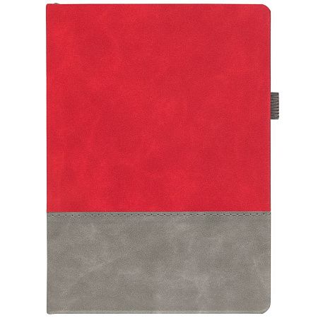 Ежедневник с твердой обложкой, без поролона, со сшивкой материалов Nubuck Touch, серый СС, и Nubuck Touch оранжевый ОО, дополнен двойным ляссе и петлей-резинкой для ручки.