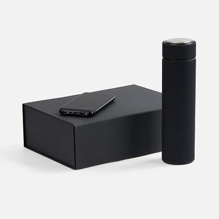 аккумулятор - пластик; покрытие софт-тач; термос - нержавеющая сталь, 304; покрытие софт-тач; коробка - переплетный картон