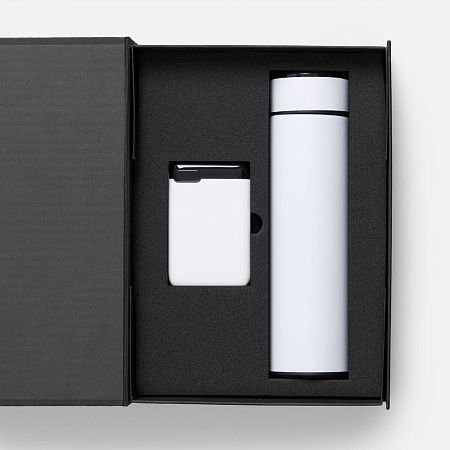 смарт-бутылка - нержавеющая сталь, 304 внутри, 201 снаружи; аккумулятор - пластик; коробка - переплетный картон