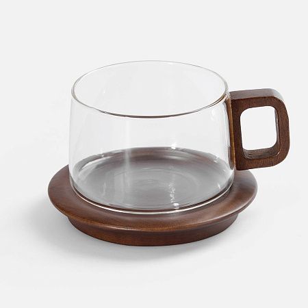 чашка - боросиликатное стекло; ручка, блюдце - дерево, орех