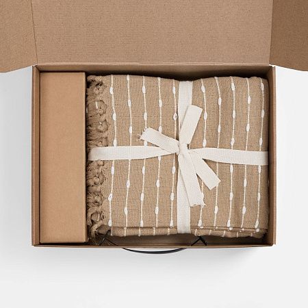 плед - хлопок 80%, полиэстер 20%, плотность 300 г/м²; флакон - стекло, палочки из файбера; коробка - микрогофрокартон