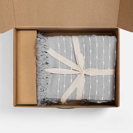 плед - хлопок 80%, полиэстер 20%, плотность 300 г/м²; флакон - стекло, палочки из файбера; коробка - микрогофрокартон