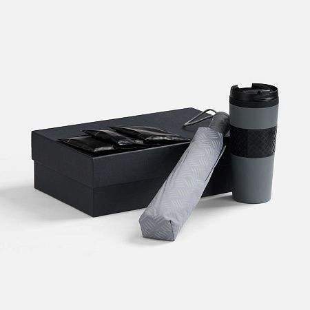 термостакан - нержавеющая сталь, 304 внутри, 201 снаружи; крышка - пластик; манжета - силикон; зонт - эпонж, 190d; рама - сталь; ручка, топ - пластик; спицы - стеклопластик; упаковка - картон, бумага