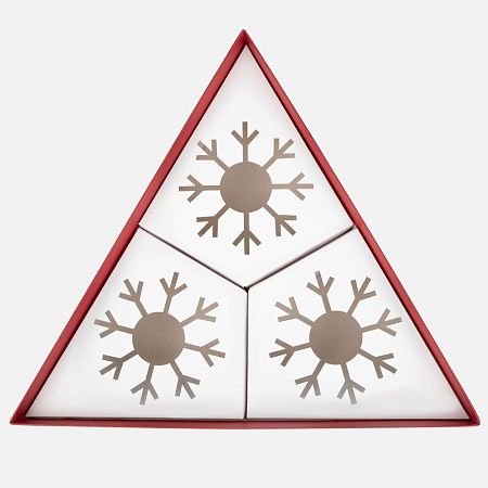 А еще Finery Trio — это маленькое произведение искусства, созданное с вниманием к деталям: шары диаметром 10 см бережно уложены в индивидуальные ложементы с изящным вырезом в форме снежинки, а стильная коробка придает подарку особую торжественность. Нестандартная треугольная форма упаковки подчеркивает оригинальность композиции и делает презент по‑настоящему запоминающимся.